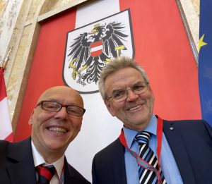 BM gew. Architekt Rudolf Steinkellner EUR ING (Obmann VÖI NÖ) hob in seiner Rede im Ministerium die Innovationskraft von Ingenieur/innen anhand von Beispielen aus der Geschichte hervor. Mag. (FH) Christian Bayer (GF TÜV AUSTRIA Akademie) zeigte auf, dass auf Basis technischer Kompetenz beeindruckende Karrieren und Lebensläufe entstehen können. Dr. Stefan Haas (CEO TÜV AUSTRIA Gruppe), selbst HTL-Absolvent betonte das Ingenieur*innen in der Wirtschaft dringend gesuchte Fachkräfte sind. Sektionschef Mag. Georg Konetzky hielt als „Hausherr“ die Festrede in diesem wundervollen Ambiente. Er zeigte sich begeistert von der spannenden und bunten Vielfalt der Ingenieur*innen in Österreich. Zum Abschluss des Festaktes richtete OSR. Dipl.-HTL-Ing. Dittmar Zoder (Ehrenpräsident VÖI) Mut-machende Worte an die neuen Ingenieur-Kolleg/innen und einen klaren Auftrag – sie gestalten die Schöpfung mit!